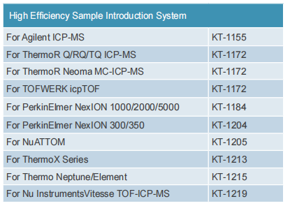 傳統(tǒng)的ICP-MS霧室可從霧化器氣溶膠中過濾出較大的液滴(>5μm)。因此傳輸效率低(通常<5%)。由于大多數(shù)感興趣的細(xì)胞系大于5μm,傳統(tǒng)霧室設(shè)計(jì)的二次過濾機(jī)制阻止了高比例的細(xì)胞進(jìn)入等離子體。為了克服這一缺陷,GE用于單細(xì)胞分析的玻璃霧室的設(shè)計(jì)不同于傳統(tǒng)ICP-MS霧室。