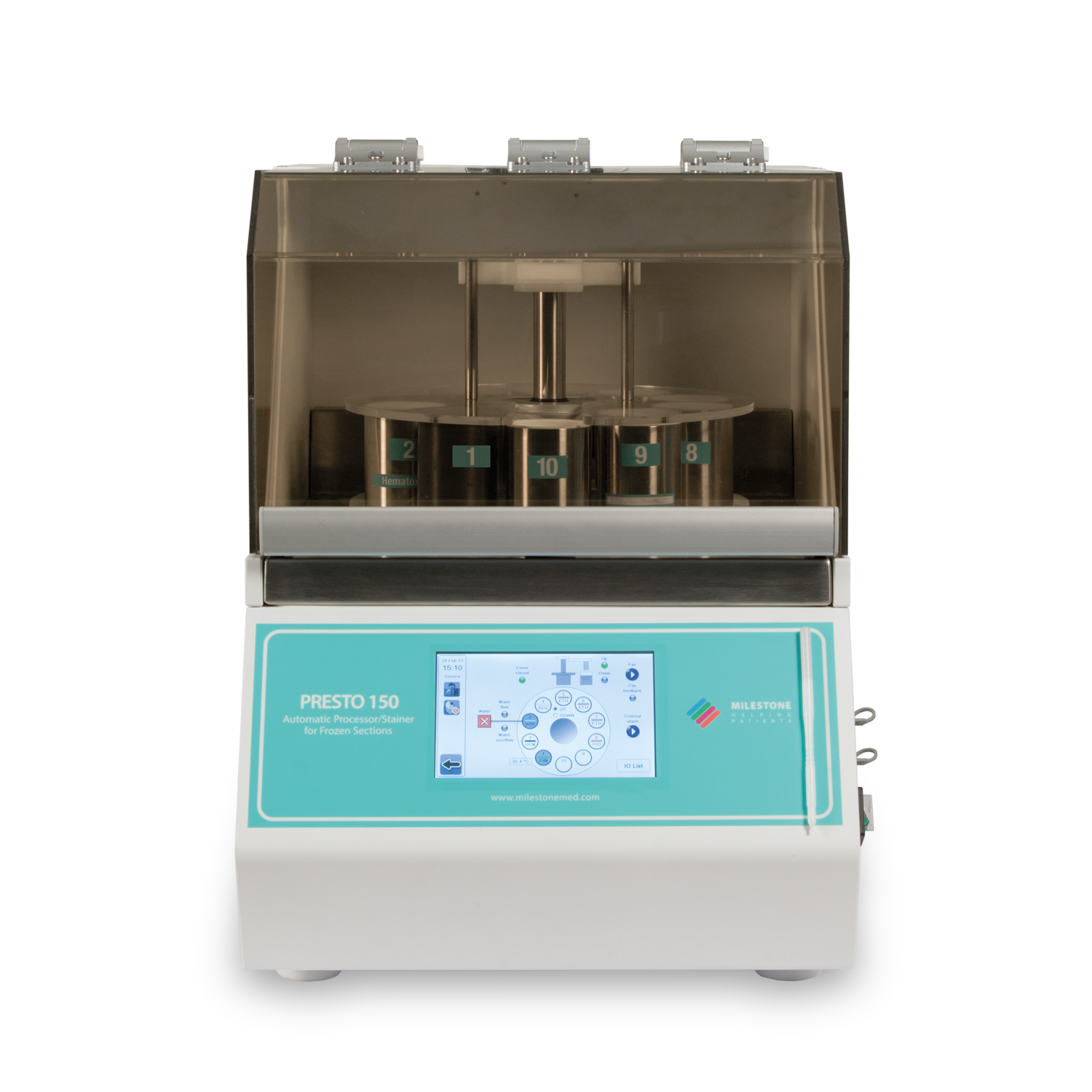 冰凍報(bào)告需要30min出具,診斷時(shí)間及寫報(bào)告的時(shí)間至少要15min,所以從取材、包埋、切片、染色及封片只需15min,而在這個(gè)過程當(dāng)中,染色與封片是可以機(jī)械代替的,冰凍染色機(jī)械化,可解放人工成本,在冰凍制片通量大或者人員較少時(shí)起到緩解壓力作用。