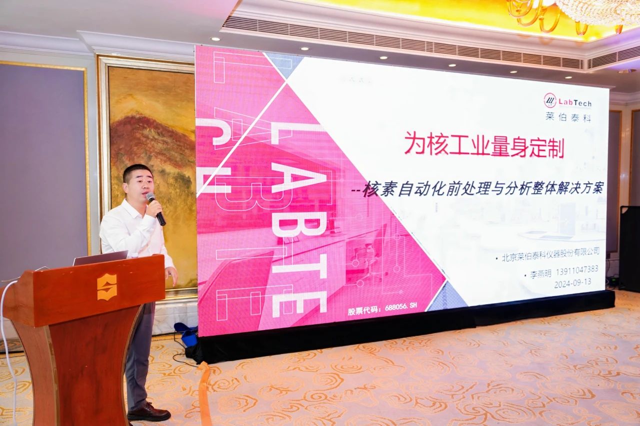 作為受邀嘉賓,萊伯泰科在“電離輻射計量&教育與科普”分會場中展示了其在核素檢測領(lǐng)域的創(chuàng)新成果。萊伯泰科核素及自動智能分析檢測事業(yè)部銷售總監(jiān)李燕明發(fā)表了《為核工業(yè)量身定制——核素自動化前處理與分析整體解決方案》的報告。他深入剖析了當(dāng)前我國核素檢測標(biāo)準(zhǔn)方法中前處理技術(shù)的現(xiàn)狀與挑戰(zhàn),并強(qiáng)調(diào)了高效自動化前處理解決方案的迫切需求。